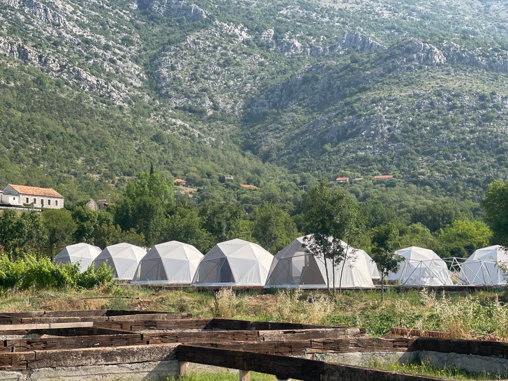 Kod nas je, u prvoj pravoj glamping oazi u Bosni i Hercegovini, u Dračevu kod Trebinja, izbor pao baš na kupole i na „community“ opciju. Radi se o 22 kupole od po 28 m², sa dodatnim sadržajima kao što je bazen, wellness objekat, teretana na otvorenom, zajednički kamin, zip line, paintball, prostor za proslave i još mnogo toga.